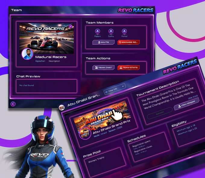 Join India’s next-generation racing esports platform and showcase your skills in thrilling online racing tournaments and Formula-style championships. Race solo or with your team, climb the leaderboards, and prove you have what it takes to dominate the track.